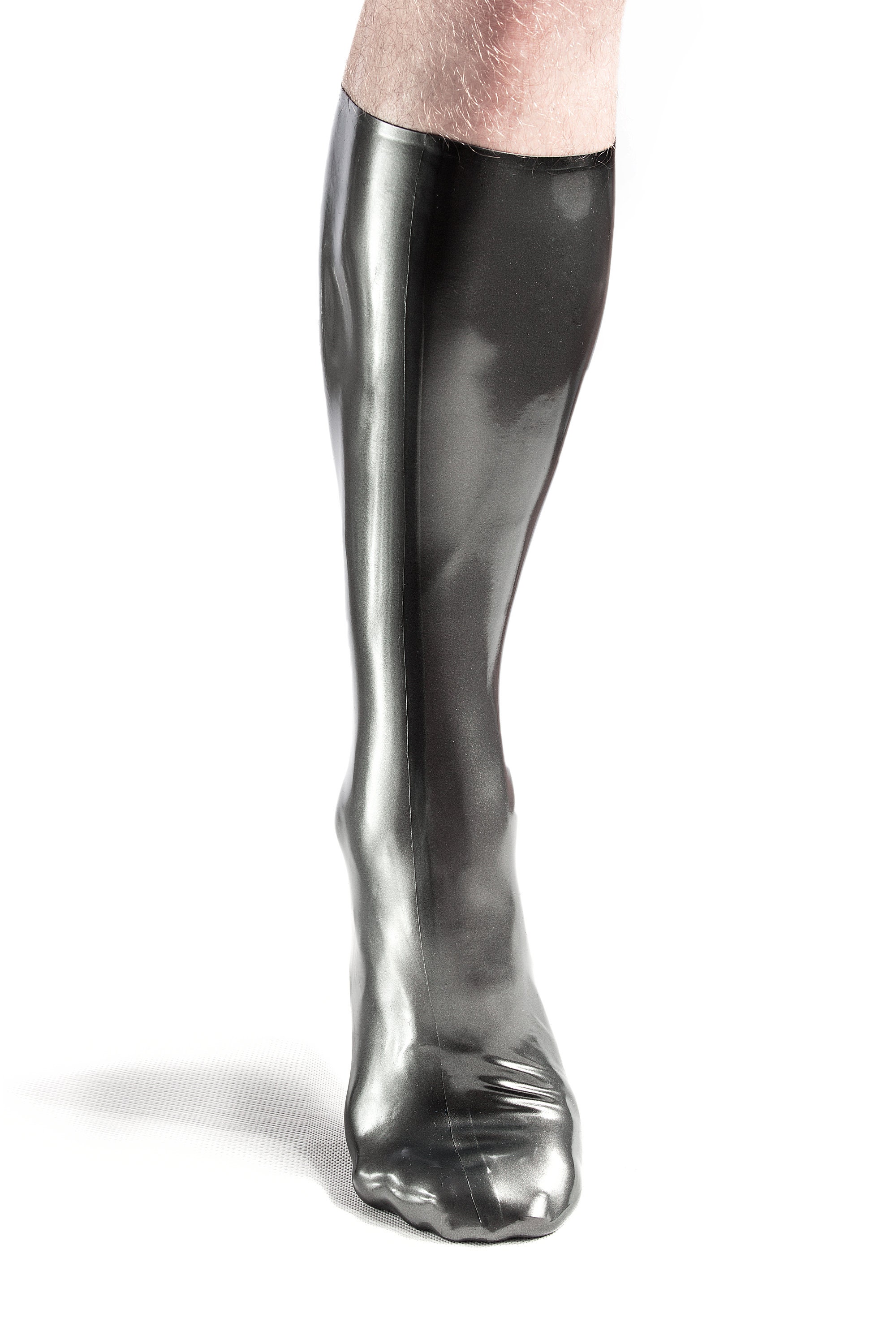 Latex high socks with finished edge.